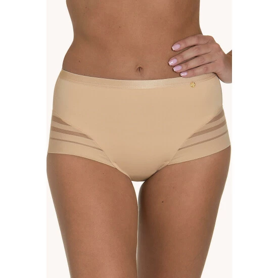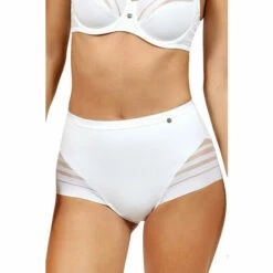 These fashionable ‘Alegra’ high waisted briefs from Lisca have seamless edges for a smooth look under tight clothes, and feature seductive transparent details. The front is lined with functional tulle to shape your figure. The briefs are soft and comfortable, thanks to the wide elastic piping in the waist, which prevents unnecessary cutting into skin.