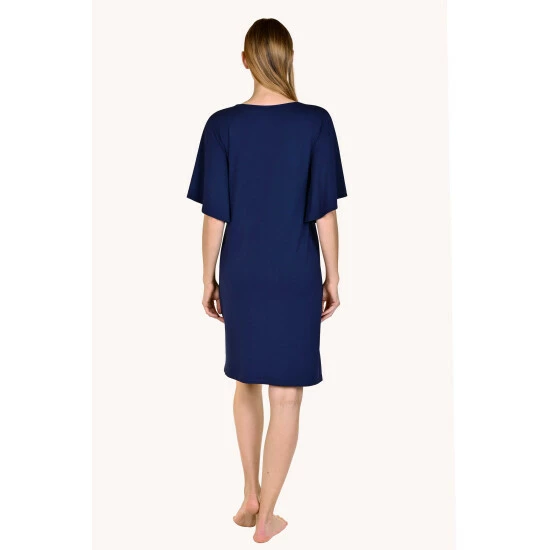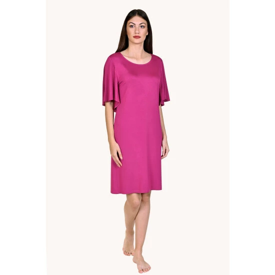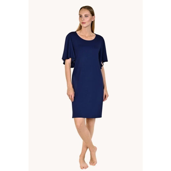 This feminine summer dress from the Lisca ‘Egina’ range is suitable for most body shapes. It is made of soft viscose and jersey knit and falls to just above the knee length. This dress has round neckline and has wide, asymmetrical sleeves.