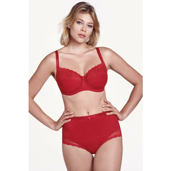 This underwired non-padded bra from the Lisca ‘Evelyn’ range has a thin breast seam, while the cut ensures a great fit. Although the front of the bra is made entirely from elastic lace, its fit ensures great support. The back of the bra is lined with tulle for a better fit, while the front is shaped as a whole, ensuring a really great fit in all sizes. Both the bottom and sides of the cups are additionally lined as well. The decorative straps are adjustable and wider in larger sizes.