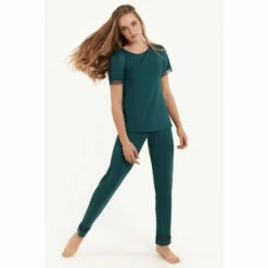These feminine pyjamas from the Lisca ‘Helen’ range are made from comfortable and soft jersey microfibre fabric which is pleasant to the touch and flows gently. This set features a short sleeve top and long bottoms