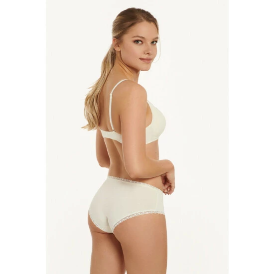 This comfortable bra non-padded bra from the Lisca ‘Ines’ range has wire support. The seamless, smooth bra is invisible underneath clothing. This romantic cotton bra is great for everyday underwear, it features vintage narrow decorative lace, double-shaped cups for excellent support, and elastic under the cups for an ideal fit. The fastening band and straps are adjustable and wider in larger sizes. This bra provides excellent support even for larger cup sizes. Pairs perfectly with briefs from the Lisca ‘Ines’ range.