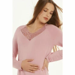 This elegant long-sleeved nightdress from the Lisca ‘Isabelle’ range features a V-neckline with floral lace. Designed in knee-length soft flowing modal fabric this nightdress will ensure a comfortable night’s sleep.