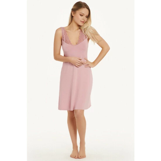 This feminine nightdress from the Lisca ‘Isabelle’ range features a V-neckline with floral lace. The adjustable straps with lace are wider at the front and narrower at the back. Designed in knee-length soft flowing modal fabric this nightdress will ensure a comfortable night’s sleep.