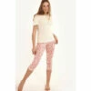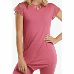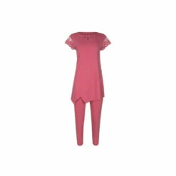 This pyjama set from the Lisca ‘Juliette’ range includes a short sleeve top and matching ¾ length leggings. The top features piping detail at the front, and sleeves finished with elastic lace. The leggings feature an elastic waistband. Soft and comfortable for a great nights sleep.