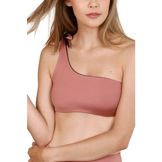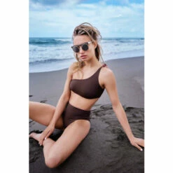 This sustainable asymmetrical bikini top from the Lisca ‘Kea’ range is made from the recycled fabric. It ties on one shoulder and is reversible. The fabric for the Lisca ‘Kea’ range is made from recycled plastic bottles that used to pollute the seas. This modern and light bikini top is a smart choice not just for summer but for putting the planet first. Combine this top with different bikini bottoms from the ‘Kea’ range to create your perfect bikini.