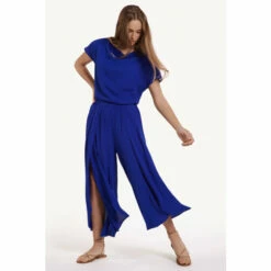 This lovely short sleeve viscose top from the Lisca ‘Nice’ range features a draped cowl neck. The Lisca ‘Nice’ swimwear collection is complemented by casual accessories in orange-red and blue-purple colourways. The vivid colours and a comfortable, soft textured material ensure a youthful casual look. The clothing can be worn either as a single piece or can complement a swimwear look. They are easy-to-wear designs made of fine, light viscose fabric, suitable for the beach or a stroll in the city. The Lisca styles designed to fit a very wide range of body types.