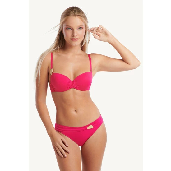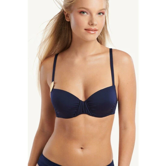This underwired padded bikini top from the Lisca ‘Okinawa’ range is functional and modern. Features draping, seamless and adjustable straps, removable decorative pendant and fastening clasp in the back.