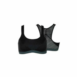 This non-wired sports bra from the Lisca ‘Powerful range features a mesh detail on the back and is an ideal choice for fashion and sports. The main role of this bra to keep your breasts in place as much as possible while looking elegant and sexy at the same time. This wireless sports bra is intended for less demanding sports activities. It is ideal for all athletes who like lingerie without wire support. The microfibre material is responsible for the comfortable feeling during movement as it wicks moisture and sweat away, allowing the skin to breathe. While jumping or during a match, your breasts will be supported by a wide elastic band placed under the breasts.
