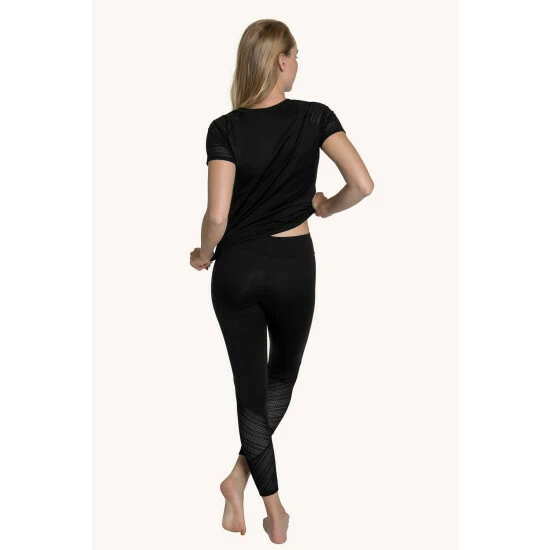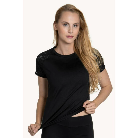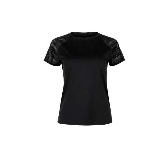 This sports top with short sleeves from the Lisca ‘Powerful’ range is made of microfibre material, which separates moisture and conceals sweating. The fabric allows your skin to breathe. Parts of the sleeves are made of beautiful, mesh lace.