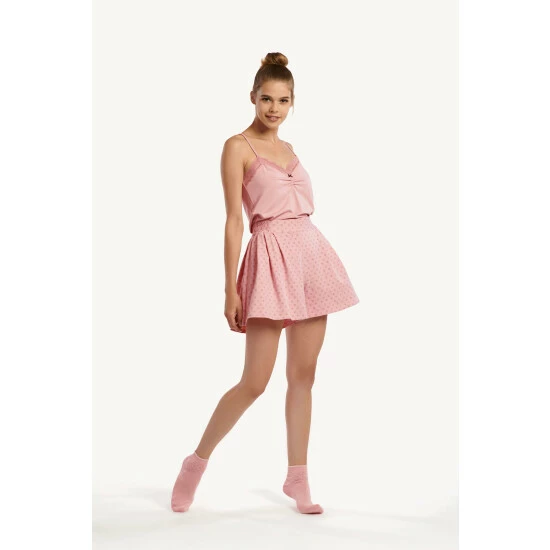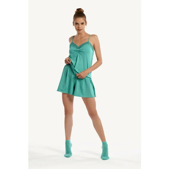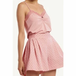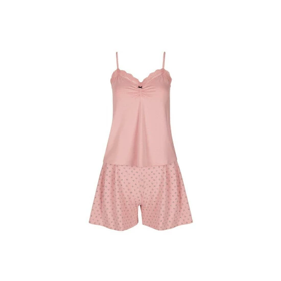 This pyjama set from the Lisca ‘Endless’ range includes a top and matching shorts. The top features thin adjustable straps, V-neck lace in the neckline and a contrasting bow. Matching shorts feature high cut, decorative print and wider elastic on the waist. Made from cotton blend fabric to ensure a good night’s sleep.
