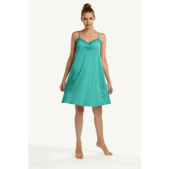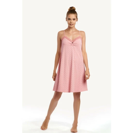 This nightdress from the Lisca ‘Endless’ range features a decorative print, thin adjustable straps, V-neck lace in the neckline and a contrasting bow. Made from cotton blend fabric to ensure a good night’s sleep.